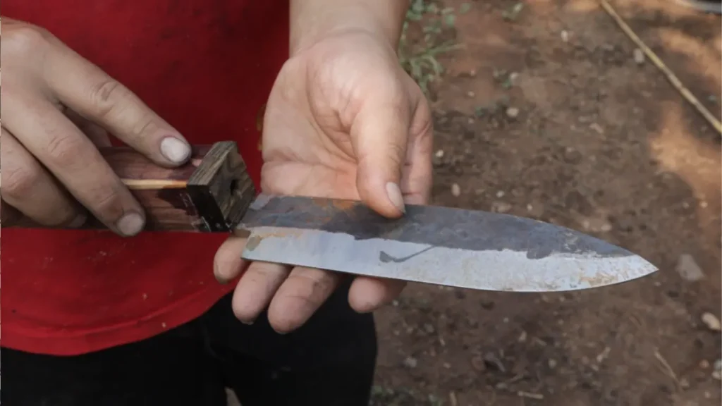 ในการเตรียมเหล็กก่อนตีมีด พี่ช่างจะเผา 2 รอบ รอบแรกผาให้เหล็กกแดงก่ำแล้วปิดลม ทิ้งเหล็กไว้ในเตา ประมาณ 10 นาที จากนั้นจึงค่อยเร่งไฟในรอบที่ 2